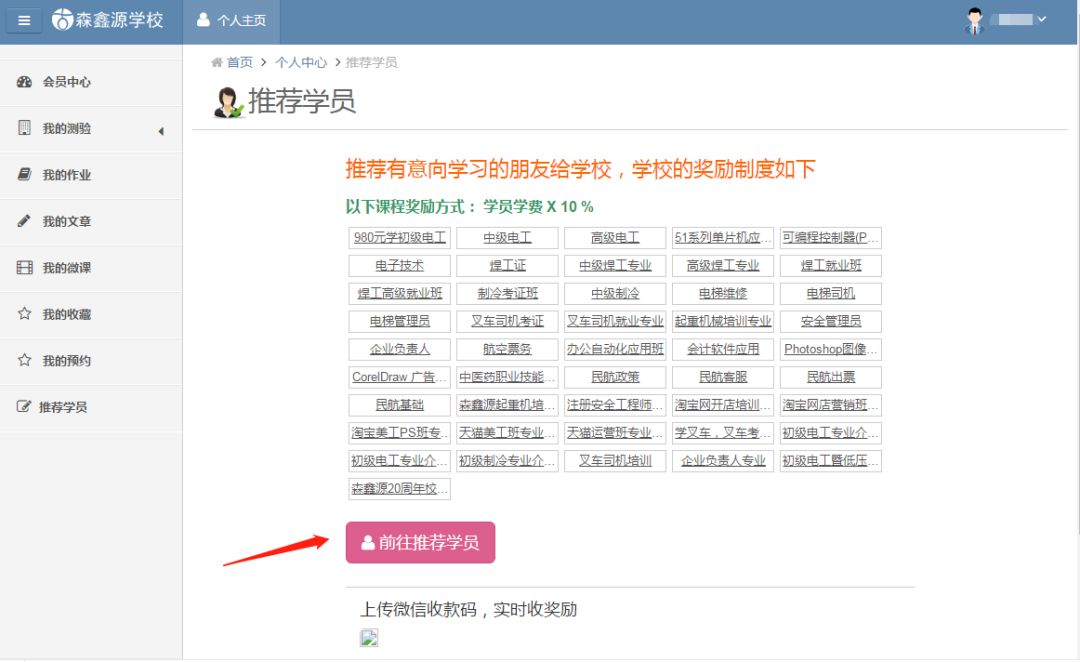 3、进入会员中心——推荐学生——前往推荐学生——添加备案——选择所要备案的专业,填写学员姓或名、手机号、预学专业。按提示内容填好后提交即备案成功。详情请咨询:0755—28282727